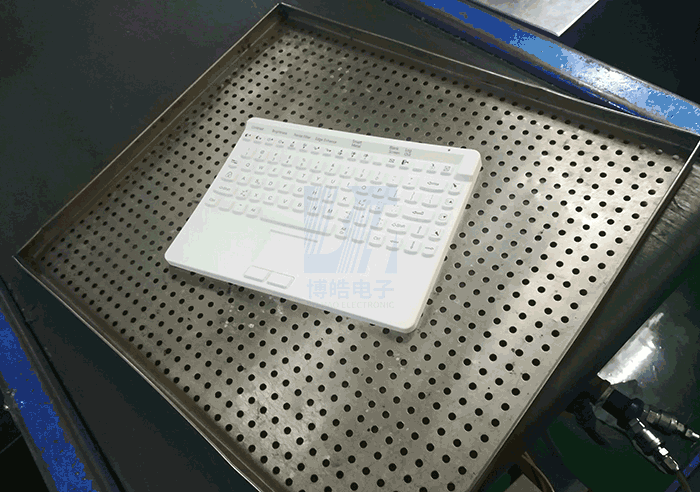 醫(yī)用硅膠鍵盤按鍵出紅外線烤箱后,需要進行表面清理,準備進入下一道工序。