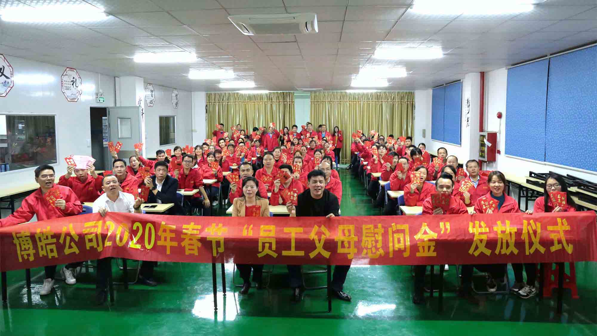 不少員工替父母拿到這筆慰問金后,在朋友圈發(fā)了圈,配文言辭雖是簡單,但字里行間都充滿了感恩,原諒我們不善言辭,滿腔熱愛無法言出,卻心懷感恩,愛公司極深。博皓總經(jīng)理吳總更是在不少員工朋友圈下評(píng)論“2020年繼續(xù)努力,爭取翻倍!”,