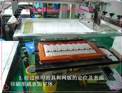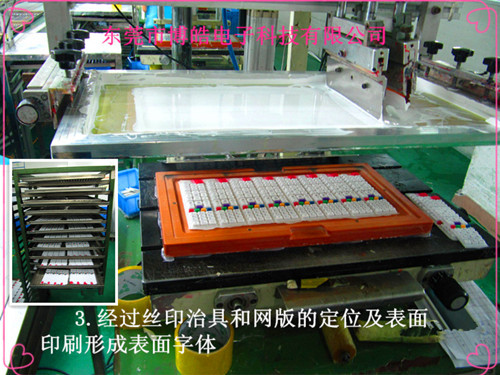 3.采用全自動(dòng)氣壓跑臺(tái)式絲印機(jī)器印刷表面字符,如圖: