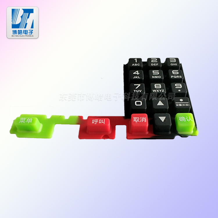 - 微機(jī)綜保按鍵,硅膠材質(zhì),采用多色成型和絲印工藝,該按鍵經(jīng)過荷重耐摩擦的測試,在博皓電子共有32臺油壓成型機(jī)可以保障大批量訂單交期穩(wěn)定。