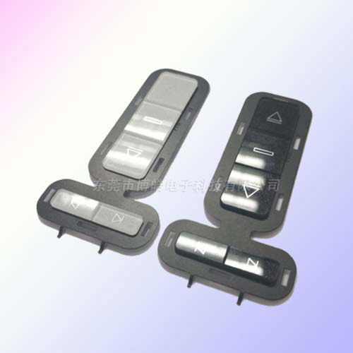 - 本款P+R按鍵是藍(lán)牙音響上的p+r按鍵,塑膠按鈕帽上噴的這是金屬色的油墨,字符采用鐳雕工藝。專(zhuān)用定制p+r按鍵廠家-博皓電子。